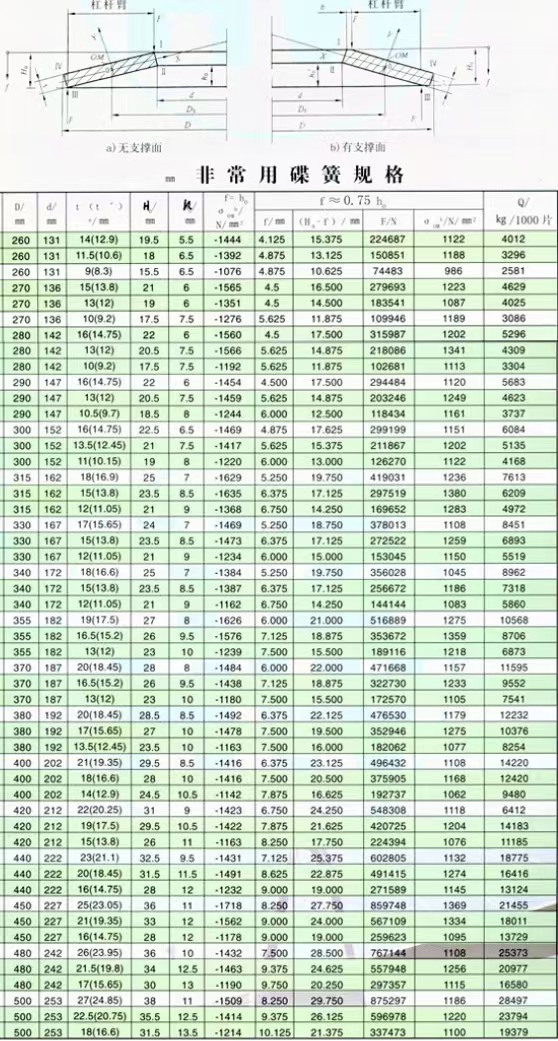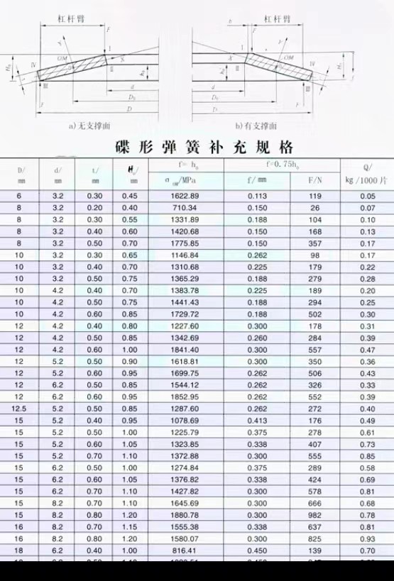 • 碟簧參數(shù)表